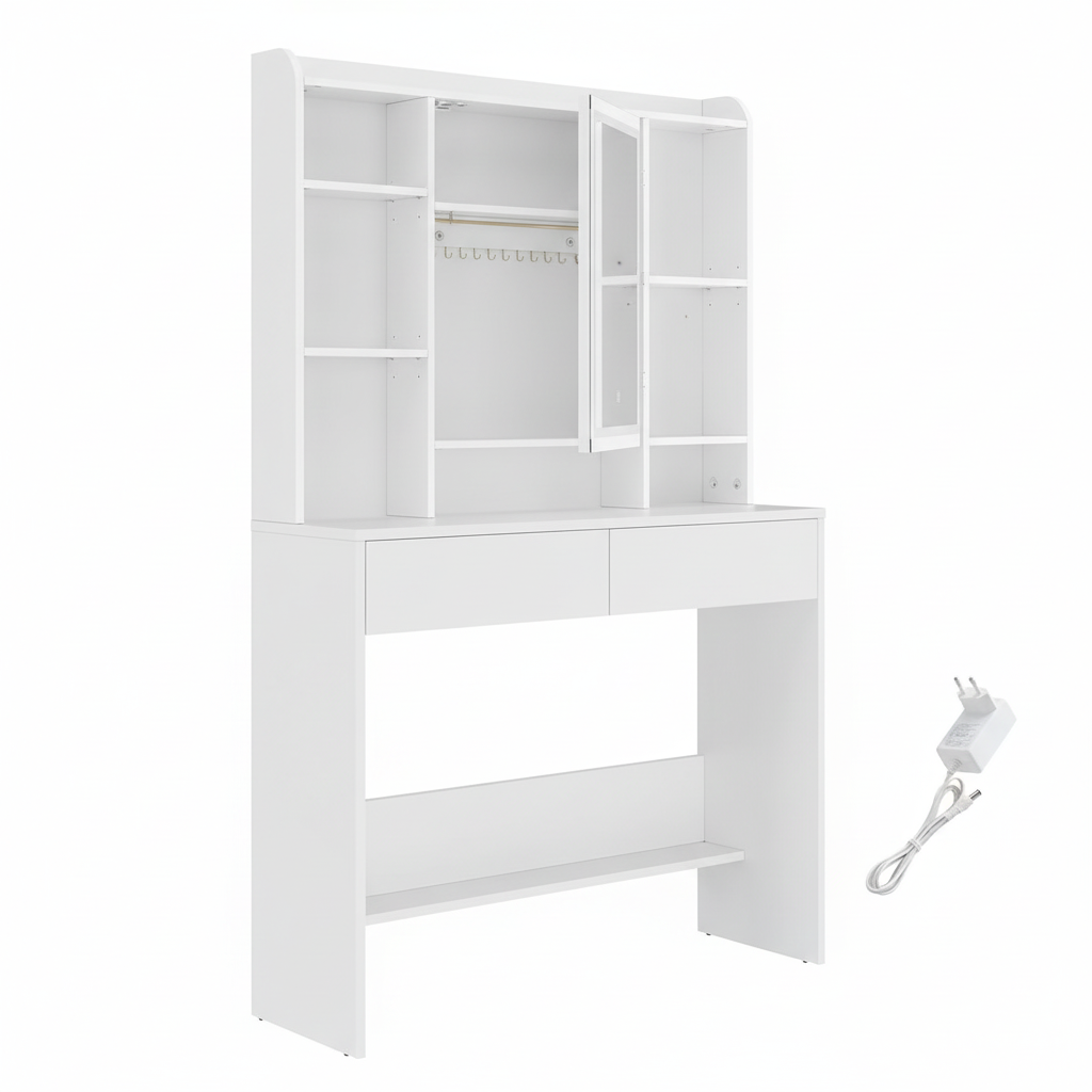 Modern Vanity Table with Integrated LED Mirror – Elegant Storage & Professional Lighting